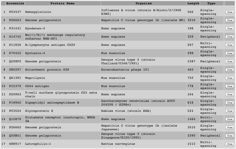 appears, with the list of proteins like the image below. It contains the Uniprot Accession number, the protein name, the organism, the protein length
